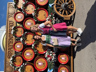 Christmas became the big reveal. I wrapped up three dirndls—a dirndl is an authentic Bavarian dress (more on that later, because they were from Amazon) I added a framed picture of beer steins, and well… yep. Smart kids. Grateful and excited, they simultaneously yelled “Oktoberfest!” At least the flight was booked.